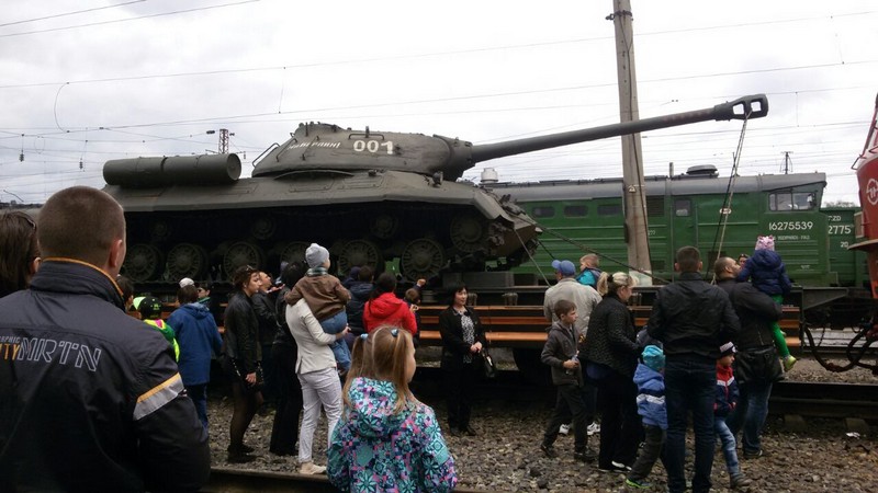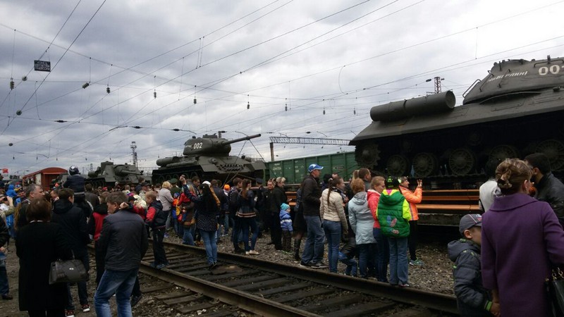 Уникальный поезд привез в Уссурийск музейные экспонаты времен Великой Отечественной войны. В 22 вагонах из города в город перевозятся исторические военной техники и бесценные экспонаты Центрального музея Вооруженных сил России. Здесь можно было увидеть танк Т-34, ИС-3, БМ-13, «Катюшу», самоходную установку СУ-100, артиллерийские и зенитно-артиллерийские орудия. Некоторые вагоны поезда переоборудованы под передвижной кинотеатр и выставку.