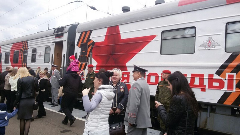20 апреля состав отправился из Москвы. На всем пути он сделал более 20 остановок на крупных станциях. Завершится маршрут агитпоезда во Владивостоке 8 мая.