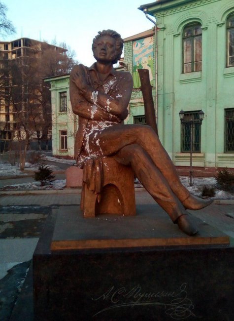 На перекрёстке улиц Пушкина и Некрасова в городе Уссурийске пострадал памятник первому из двух классиков отечественной литературы. Он простоял невредимым чуть больше полугода после открытия.