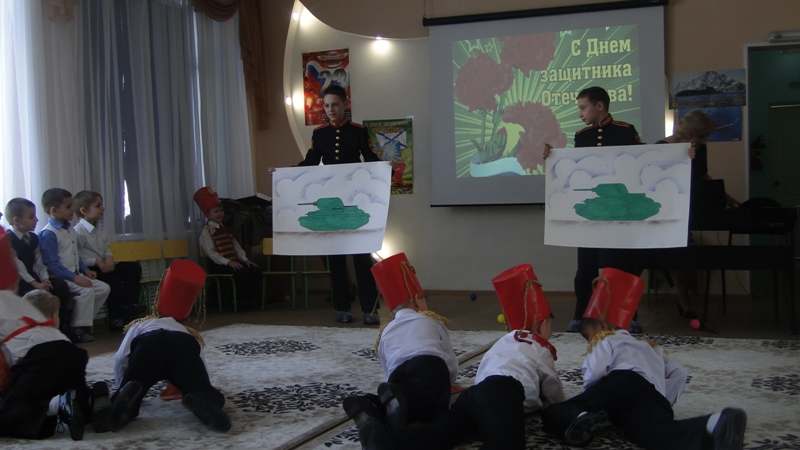 Чтобы порадовать родных и близких, а также поздравить всех присутствующих с Днем защитника Отечества, дети готовились и репетировали. Во время утренника воспитанники подготовительной группы исполнили «Гусарский танец», а старшая группа выступила с танцевальным номером «Граница». Педагоги детского сада в свою очередь организовали для юных защитников игры и конкурсы, такие как «Попади в цель» и «Рота – подъем!». Не остались в стороне и суворовцы! Они подготовили небольшой, но поучительный фильм, который показали ребятам. Юным защитникам напомнили о том, как важно вести здоровый образ жизни, избегать вредных привычек, а также ценить дружбу.