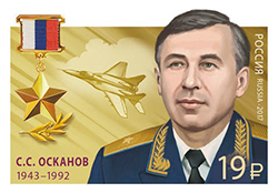 Специальные гашения почтовых марок серии «Герои Российской Федерации» состоялись в феврале этого года в Москве. 7 февраля в почтовое обращение вышла марка в честь 25-летия подвига генерал-майора авиации, первого Героя Российской Федерации Суламбека Осканова, погибшего при испытании истребителя 4-го поколения МиГ-29.