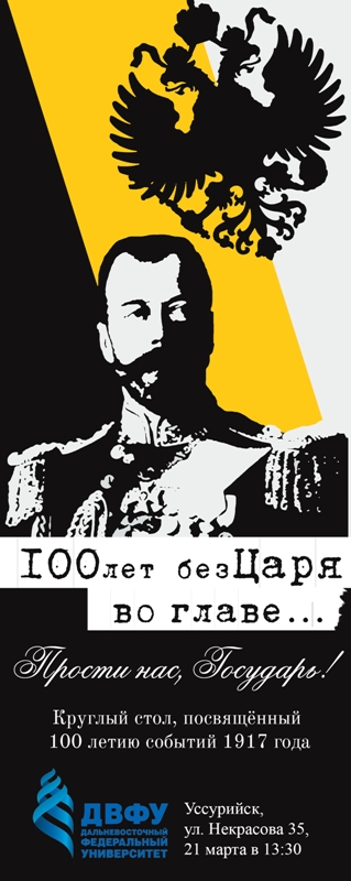 24.03.1721 марта в Дальневосточном федеральном университете в Уссурийске прошёл круглый стол «100 лет без Царя во главе…», посвящённый 100-летию событий 1917 года.