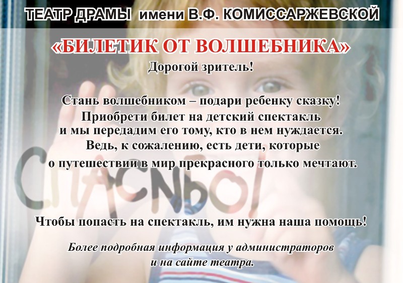 билет на детский спектакль, и мы передадим его тому, кто в нем нуждается. Ведь,
