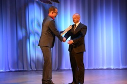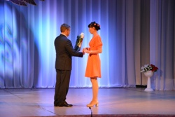 Актеры Елена Галушкина, Андрей Болсуновский и Дмитрий Широков были удостоены денежной премии, которую им вручил директор Дома офицеров российской армии Айдарбек Сергазинов после своей поздравительной речи.