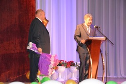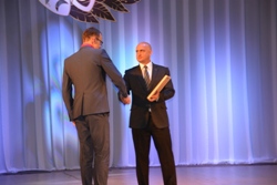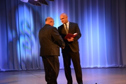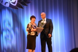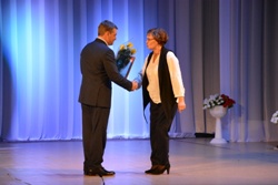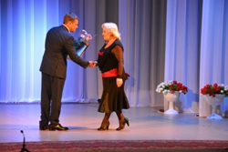 Теплые и искренние слова поздравлений адресовал театру ВВО глава администрации Уссурийского городского округа Евгений Корж. И, несомненно, почетным событием для работников театра стало награждение их главой администрации УГО за вклад в культурное развитие Уссурийского городского округа. Наград удостоились: директор театра ВВО Николай Столбоушкин, художник-постановщик Юрий Воронков, завтруппой Лариса Столбоушкина, актриса Елена Галушкина, актриса Эльвира Денежкина, заслуженная артистка РФ Дина Рябинина, актер Юрий Рябинин, заслуженная артистка РФ Тамара Савиных, заслуженная артистка РФ Маргарита Сотникова, заслуженная артистка РФ Галина Федоткина и народный артист РФ Владимир Тютюнник.