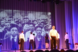 По замыслу главного режиссера театра Алексея Похресного первая часть мероприятия представляла собой небольшой спектакль – историю. Молодые актеры театра ВВО познакомили зрителей с процессом создания театра, с основоположником театра ВВО Фирсом Шишигиным, с выдающимися актерами, режиссерами и другими работниками театра, которых уже давно нет, но имена, которых навечно вписаны в историю театра. Небольшой рассказ о каждом выдающемся деятеле театра ВВО сопровождался интересным видеорядом из архивных фотографий и, конечно же, аплодисментами бессмертному творчеству этих замечательных людей.