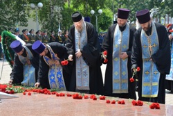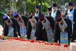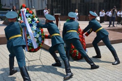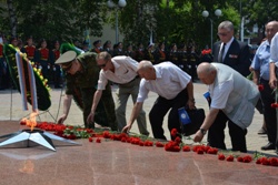 Затем состоялось возложение венков и цветов к Вечному огню. В мероприятии приняли участие глава администрации УГО Евгений Корж, глава УГО Николай Рудь, депутаты, представители 5-й Краснознамённой общевойсковой армии, духовенство, ветераны боевых действий, представители общественных организаций города, юнармейцы, воспитанники патриотических клубов.