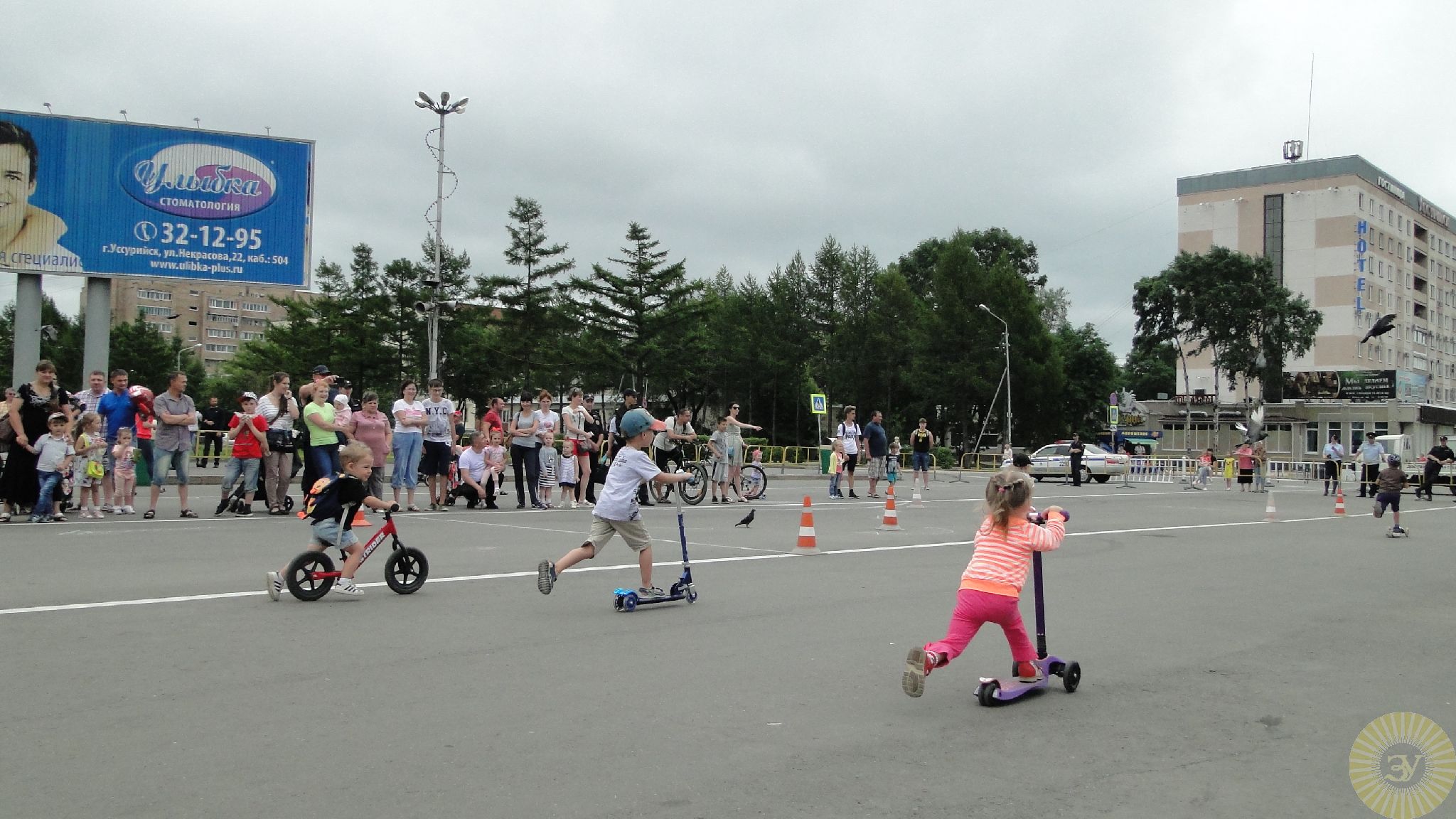 На площади работало несколько площадок, где все - от мала до велика могли поучаствовать в конкурсах и даже попробовать свои силы в вождении. За руль машины автошколы «Дороги Приморья» мог сесть любой желающий совершеннолетний горожанин и под руководством опытного инструктора проехать несколько метров. Дети рисовали на асфальте тарантасы своей мечты, соревновались в гонках на велосипедах, самокатах и гироскутерах. Взрослые тоже имели возможность побороться за призы.