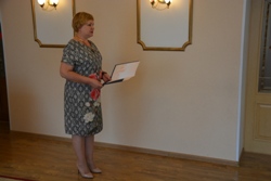 От Управления Пенсионного фонда РФ по УГО Приморского края со словами поздравлений к счастливым родителям обратилась главный специалист-эксперт Управления Пенсионного фонда Елена Михалева. Также она вручила Роману и Ксении государственный сертификат на материнский (семейный) капитал и подарок.