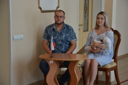 14.07.17Сегодня, 14 июля, в управлении ЗАГС администрации УГО прошла торжественная регистрация рождения, посвященная Дню семьи, любви и верности. Малыш, регистрация которого состоялась в торжественной обстановке, второй ребенок в семье Романа и Ксении Хузахметовых. Маленький Захар родился 10 июля 2017 года в Уссурийской центральной городской больнице. Регистрация нового члена семьи Хузахметовых знаковая еще и тем, что состоялась накануне первого пятилетнего юбилея этой семьи.