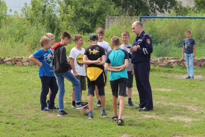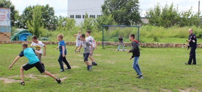 Мальчикам сотрудник полиции показал футбольные приемы, а затем все вместе сыграли в футбол. Специалист направления профессиональной подготовки отдела по работе с личным составом Сергей Рыбалко и старший специалист группы по связям со СМИ Ольга Данченко продемонстрировали девочкам приемы самообороны, рассказали о мерах личной безопасности, негативном воздействии на организм алкоголя, табака и наркотиков и пользе занятий спортом.