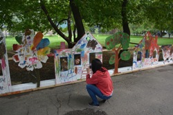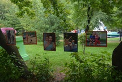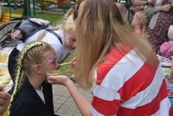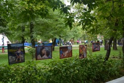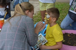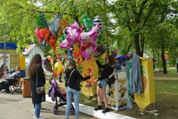 Весь парк был разбит на тематические площадки: фотосалон, рисунки на асфальте, фотовыставка. На одной из них юных горожан встречали аниматоры, которые призывали всех принять участие в шоу мыльных пузырей.