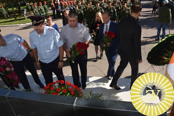 27.09.17Траурный митинг, посвященный памяти командующего 5 Краснознаменной общевойсковой армией, состоялся 27 сентября в Уссурийске. На Аллее Славы на территории штаба 5-й Краснознаменной общевойсковой армии собрались сотни людей. В знак уважения к погибшему при исполнении воинского долга генералу Валерию Асапову к его портрету у мемориальной доски «Героям 5-ой общевойсковой армии» возложили цветы коллеги и подчиненные Валерия Григорьевича, представители краевой и городской администраций, депутаты Думы УГО, ветераны, члены общественных организаций, юнармейцы, воспитанники суворовского училища и жители города и края.