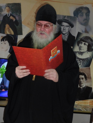 Тепло поздравила художника с важным событием в его насыщенной творческой жизни и активист клуба ветеранов «От всей души» и Уссурийского объединения краеведов им. Владимира Арсеньева А. И. Мешкова. От имени гостей Анна Ивановна поблагодарила Владимира Савина за участие в патриотическом воспитании молодежи во время многочисленных встреч со школьниками и студентами Уссурийска, а также краевого центра. Владимир Дмитриевич знакомит всех со своими собраниями графики и живописи, среди которых «Художник и космос» - одна из наиболее ярких и оптимистичных тем.