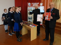 В заключение открытого урока гости подарили библиотеке школы свои поэтические сборники, книги, художественные проекты, наборы открыток по рисункам и картинам художника Владимира Савина.