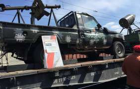 Жители города смогли ознакомиться с образцами бронетанковой техники, артиллерийского вооружения, бронеавтомобилей и инженерной техники. В одном из вагонов была представлена выставка с работами военных художников и фотографов. Горожане также увидели экспозиции ракетно-артиллерийского вооружения, беспилотных летательных аппаратов, химического оружия. Всего было представлено более 500 образцов трофейной техники и вооружения. В качестве экскурсоводов выступили российские военнослужащие, которые являются непосредственными участниками антитеррористической операции в Сирии.