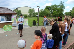 03.06.19Вместе с полицейскими, школьники из отряда ЮИД подготовили для ребят театрализованное представление, в котором Маши, медведь, другие герой сценки показали как важно соблюдать ПДД.