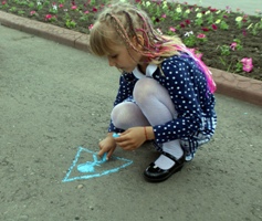 цветные мелки, чтобы дети могли нарисовать на асфальте рисунки на дорожную