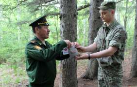 Накануне был осуществлён забор земли с братских могил в селах Корфовка, Николо-Львовское, а также на заставе Пограничной службы около села Монакино с могилы сержанта Григория Серебрякова, погибшего в бою с японскими захватчиками. Солдатские кисеты будут также переданы в Главный храм Вооружённых сил России.