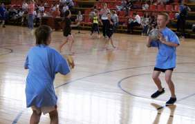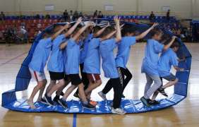 Состязания проходили в несколько этапов: ребята бросали мяч в баскетбольную корзину, играли в дартс, сбивали футбольным мячом фишки в воротах и соревновались в эстафете.