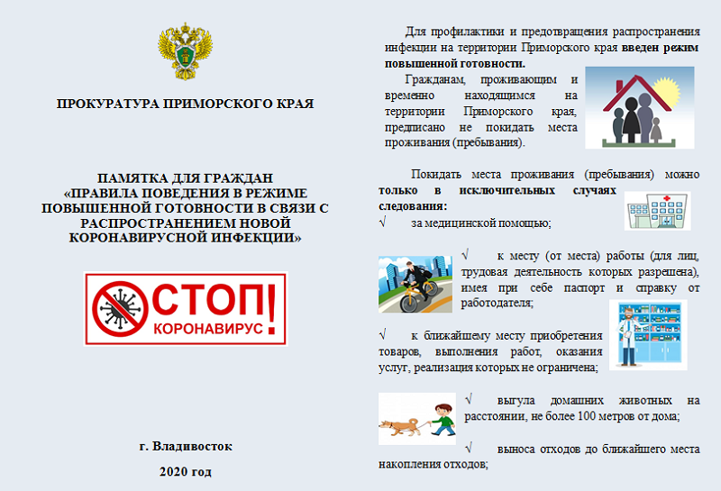 ПАМЯТКА ДЛЯ ГРАЖДАН «ПРАВИЛА ПОВЕДЕНИЯ В РЕЖИМЕ ПОВЫШЕННОЙ ГОТОВНОСТИ В СВЯЗИ С РАСПРОСТРАНЕНИЕМ НОВОЙ КОРОНАВИРУСНОЙ ИНФЕКЦИИ»