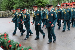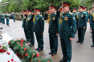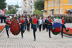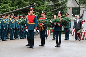 04.09.20На Аллее Славы около штаба 5-й Краснознаменной общевойсковой Армии глава Уссурийского городского округа Евгений Корж, командование армии, офицеры возложили цветы и венки к стеле с именами героев. Цветы легли и к подножию памятника генералу-лейтенанту Валерию Асапову, погибшему во время боевой командировки в Сирии, в 2017 году.