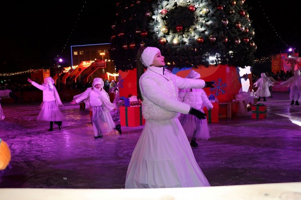 Открылся ледовый городок театрализованным шоу по мотивам сказки «Щелкунчик». Артисты из детской театральной студии «Маска», которая действует при уссурийском театре драмы им. В.Ф. Комиссаржевской, а также участники владивостокских танцевальных коллективов «Алые паруса», «Маугли», «БДТ» мастерски изобразили рождественский бал и рассказали о приключениях девочки Мари и ее верного защитника – заколдованного принца Щелкунчика. Известная всем с детства музыка из одноименного балета Петра Ильича Чайковского только придала сказочности театрализации.