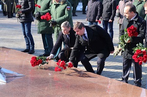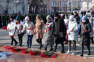 Живые цветы легли к подножию стеллы, на которой высечены имена героев – военнослужащих 5-й Армии, отдавших свои жизни, защищая Отечество. Пурпурные розы, как знак памяти и скорби, возложили к памятнику погибшему в Сирийской Арабской республике командующему 5-й Армией, генералу-лейтенанту Валерию Асапову. В честь тех, кто погиб за Родину, была объявлена минута молчания. Затем прозвучал ритуальный оружейный салют.