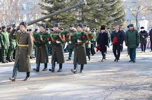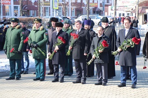 В День защитника Отечества в Уссурийске возложили цветы и венки к памятникам героям