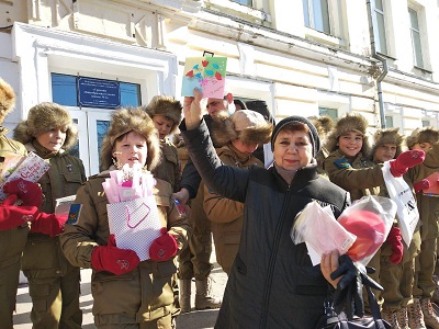 В канун Международного женского дня около 200 юнармейцев, спортсменов, представителей Совета отцов при уполномоченном по правам ребёнка в Приморском крае Уссурийского городского округа вышли на улицы города, чтобы подарить женщинам хорошее настроение, улыбки и сувениры, изготовленные своими руками. Акция прошла в трёх районах города - 5ый километр, Железнодорожная слобода и центр.