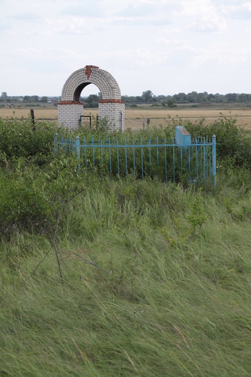 …Кладбище расположено примерно в полутора километрах от трассы, и к нему ведёт грунтовая дорога. Побоявшись, что автомобиль может застрять в колее, мы отправились к некрополю пешком. На месте увидели большую кирпичную арку и территорию, огороженную столбами, между которыми натянута колючая проволока.