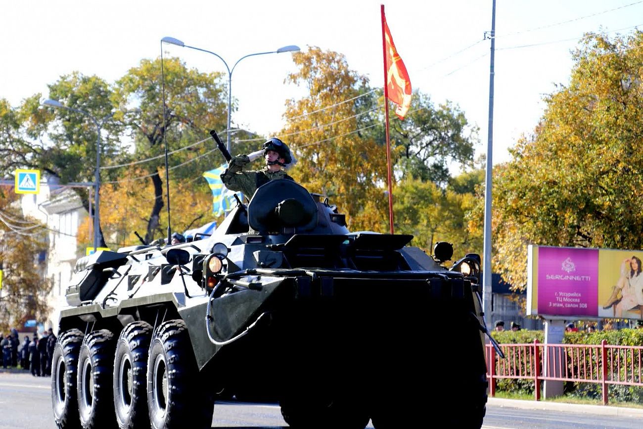 16.10.21В субботу, 16 октября, в Уссурийске состоялось военное шествие, посвященное 80-й годовщине со дня основания 5-й Армии.