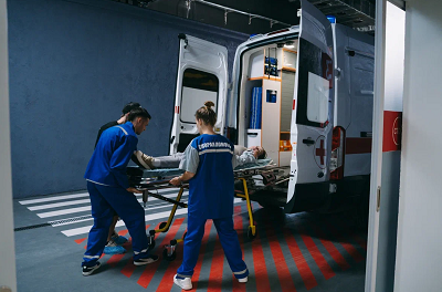 декорации, воссоздающие приёмное отделение, палаты и операционные НИИ скорой