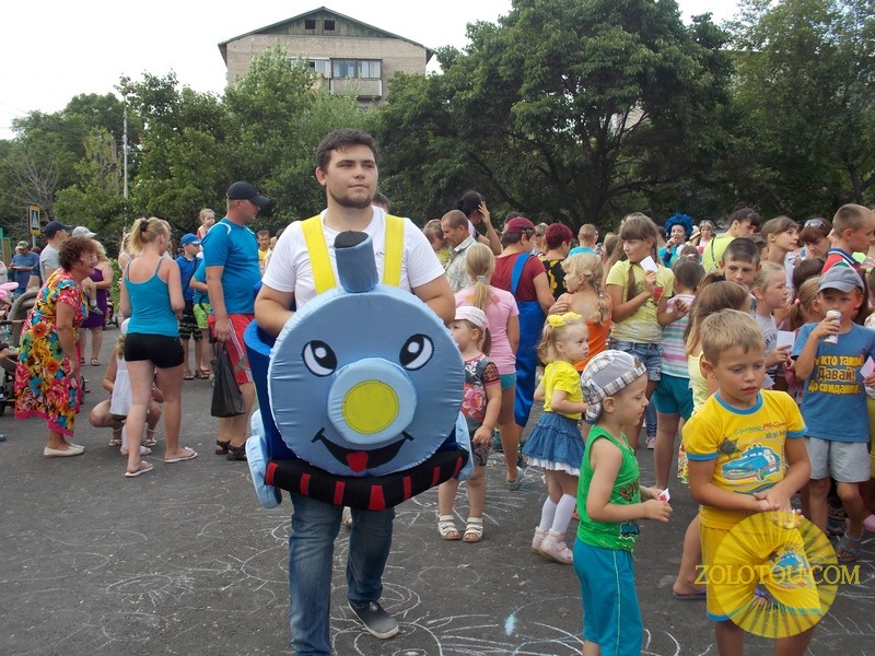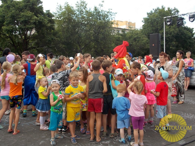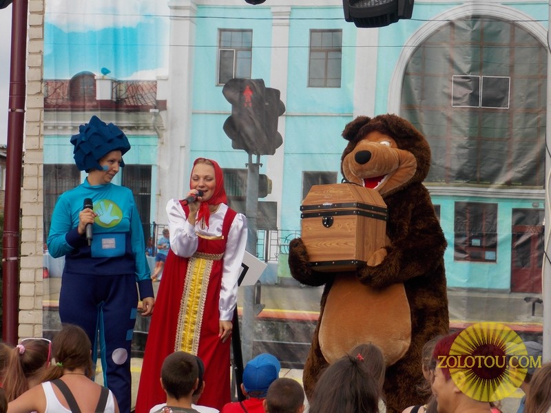 Сначала праздник пришёл к самым маленьким жителям. Развлекательная программа с участием персонажей мультфильмов: Фиксиков, Паровозика, Маши и Медведя порадовала ребятишек. Увлекательные игры, забавы и конкурсы - вот основная составляющая детской части.