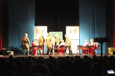 В четверг, 10 марта, необычный урок для учащихся образовательных учреждений Уссурийска показали в драматическом театре Восточного военного округа. В этот день за школьную парту на глазах у зрителей сели артисты. Именно так, в современной школе на открытом уроке литературы начинается действие спектакля «Василий Теркин. Книга про бойца». Желающих «посмотреть» поэму Александра Твардовского было предостаточно. Юные зрители заняли весь партер в большом зрительном зале Дома офицеров, а после просмотра поделились мнением об увиденном.