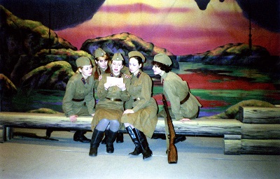 – В то время было принято делать афиши по образцу: наверху дата показа спектакля, автор, название и время, все афиши были без картинок. Такого стиля придерживались все центральные театры. Но ведь это детская сказка, хотелось, чтобы малыш с мамой шли, увидели афишу, и ребенка это заинтересовало! Поэтому я и афишу, и саму сказку сделал яркими, цветными. В каком-то плане совершил «революцию»! И когда Борис Александрович увидел, какое все получилось сказочное, красивое, его мнение насчет неопытного художника поменялось. А через год с режиссером Михаилом Руденко мы сделали спектакль «А зори здесь тихие…». Спектакль возили на гастроли в Хабаровск и зрители 15минут аплодировали стоя после окончания, не отпускали артистов. Мы «взорвали» зал этим спектаклем!