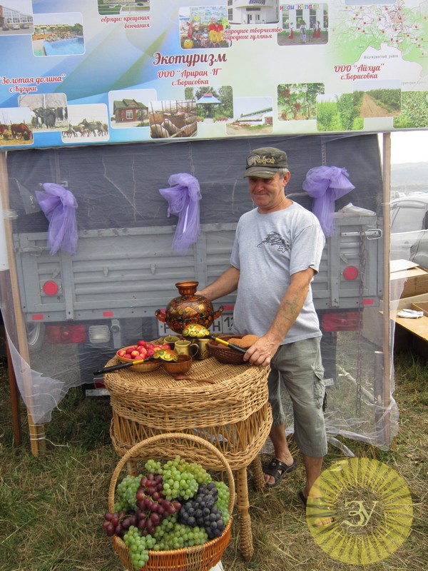 Первой о своих достопримечательностях рассказала самая дальняя в нашем округе Алексей-Никольская территория. Ее поселения находятся у самой российско-китайской границы. Поэтому пограничный столб, охраняемый овчаркой, стал главным символом в оформлении. Пройдя мимо всех выставок поселений создалось впечатление, что не выходя за поляну праздника попутешествовал по всему округу. А еще свои экспонаты представили национальные диаспоры. Здесь были костюмы, музыкальные инструменты и национальные блюда от плова до сладостей.