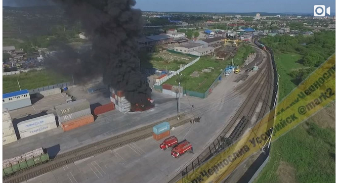 улице Тургенева горожане стали свидетелями взрыва и пожара на контейнерном терминале. Горели четыре контейнера с пенополистеролом.