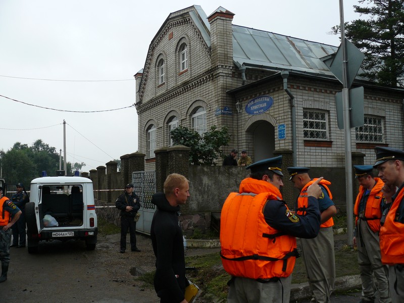 Владимир Ваганов со своим сыном и помощницей Натальей будто бы не уходили, хотя сказали, что пару часов удалось поспать. Приехал начальник Дальневосточного регионального центра МЧС России генерал-лейтенант Александр Соловьев. Он руководит операцией. Около семи утра приехал глава администрации Евгений Корж.