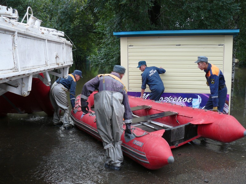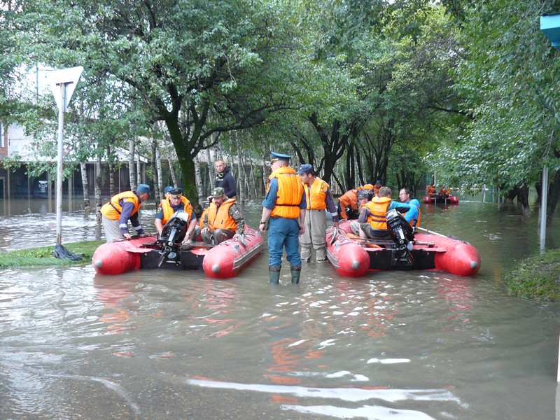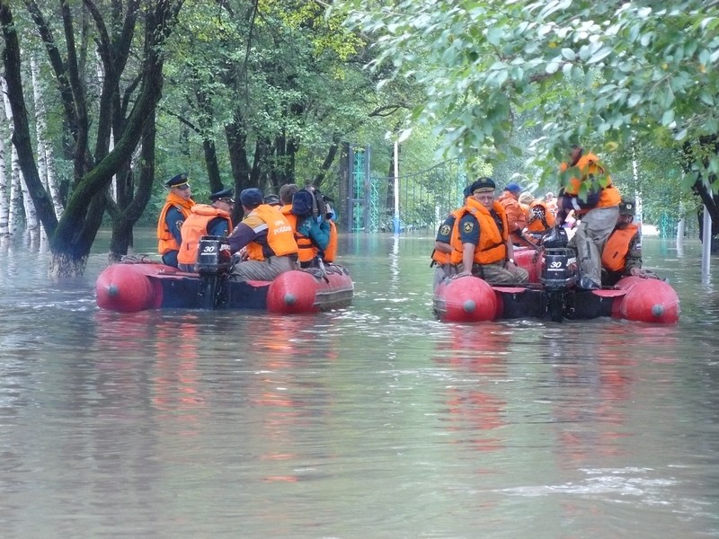 Посовещавшись, А. Соловьев, Е. Корж, А. Лихидченко, В. Ваганов отправляют экспедицию к клеткам, чтобы изучить ситуацию и доставить еду животным. Быстро накачали 4 лодки, и через 20 минут путешественники отправились в путь. Хочется надеяться, что все животные (мишки, кабаны, лев) остались живы.