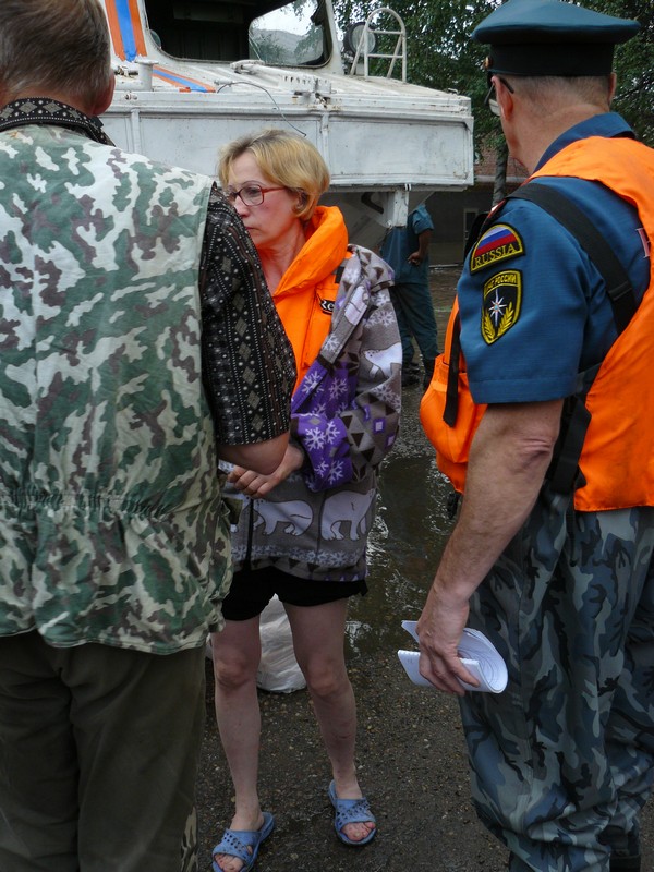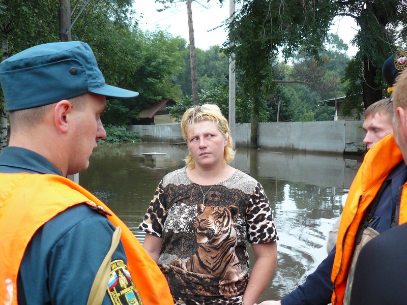 Людей меньше не стало. Несколько парней из Владивостока в каком-то спецснаряжении, похожем на водолазное, ругаются с директором зоопарка В. Вагановым и упрекают его в бездействии. Везде снуют активисты и какие-то люди с камерами. Один из них на английском языке начал что-то говорить на камеру. Со слов Ваганова удалось выяснить, что когда началось подтопление, всех мелких животных удалось эвакуировать в р-н Утесного (но нескольких енотов и, кажется, лису) спасти не успели. Погибла одна медведица Масяня, любимица местной детворы.