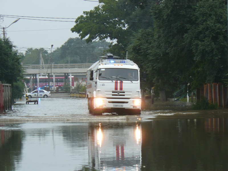 Полиция предусмотрительно выдвинула свой кордон ближе к Вечному огню и увеличила количественный состав - их стало около 10 человек. Меня неохотно, но пропустили. Возле воды -техника, около 30 экипированных сотрудников МЧС, половина из которых офицеры. Как известно, нам оказывают помощь спасатели из Владивостока, Хабаровска и Амурской области.