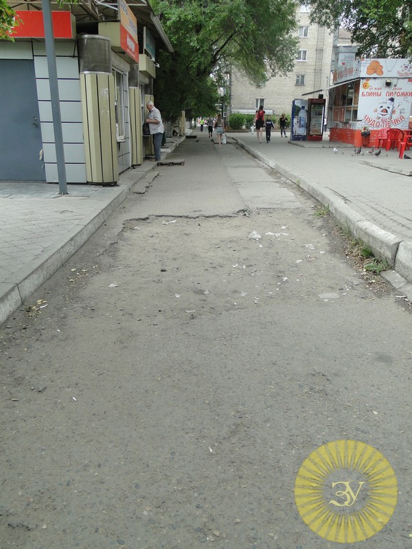 Практически ежедневно слабовидящим и незрячим горожанам приходится с риском для здоровья преодолевать разбитый отрезок тротуара. Данный участок отличается большой проходимостью, и с осторожностью здесь идут даже люди с нормальным зрением: чтобы не споткнуться, практически каждый замедляет шаг. Разрушенные плиты и прочие препятствия требуют предельного внимания.