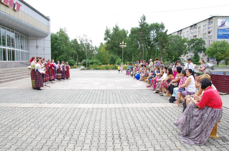 Одно из праздничных мероприятий, посвященных Дню флага, 22 августа состоялось в молодежном центре культуры и досуга «Горизонт». По замыслу организаторов в праздничную программу вошли патриотические и народные композиции артисты выступали для уссурийцев под открытым небом. Зрители могли по достоинству оценить песни Анны Тишиной, Антонины Поповой и Людмилы Богаченко. Народные коллективы хор «Славица» и ансамбль «Русская душа» радовали гостей мероприятия. Музыкальные номера концерта перемежались рассказами ведущих об истории Дня государственного флага, а девушки-волонтеры раздавали прохожим и гостям мероприятия трехцветные ленточки с символикой праздника.