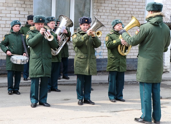 25.03.20 Торжественным маршем под звуки военного оркестра военнослужащие и юнармейцы чествовали участника Великой Отечественной войны Геннадия Фисенко.