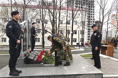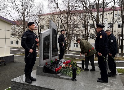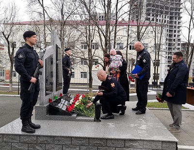 Справочно: «Люди! Склоните головы! Преклоните колено! Вспомните всех поименно! Память – долг поколений воинам, Защитникам земли Русской!», - слова, выбитые на мемориале ОМОН «Восток» Управления Росгвардии по Приморскому краю, как и 11 имен сотрудников, погибших в разные годы при исполнении служебного долга. Это старший сержант милиции Богданов Алексей Владимирович - погиб 4 сентября 1994 года, старший лейтенант милиции Беляев Алексей Викторович - погиб 20 сентября 1999 года, лейтенант милиции Закржевский Сергей Александрович - погиб 21 июня 2000 года, старшина милиции Мицай Роман Викторович - погиб 19 октября 2000 года, майор милиции Лиходин Евгений Геннадьевич - погиб 30 октября 2004 года, младший лейтенант милиции Зенченко Владимир Васильевич - погиб 30 октября 2004 года, старший лейтенант полиции Скакун Александр Владимирович - погиб 16 декабря 2013 года, лейтенант полиции Коныгин Андрей Николаевич - погиб 16 декабря 2013 года, старший прапорщик полиции Скробов Александр Александрович - погиб 16 декабря 2013 года, младший сержант полиции Кундель Валерий Евгеньевич - погиб 27 февраля 2022 года, прапорщик полиции Драчук Николай Сергеевич - погиб 27 февраля 2022 года.
