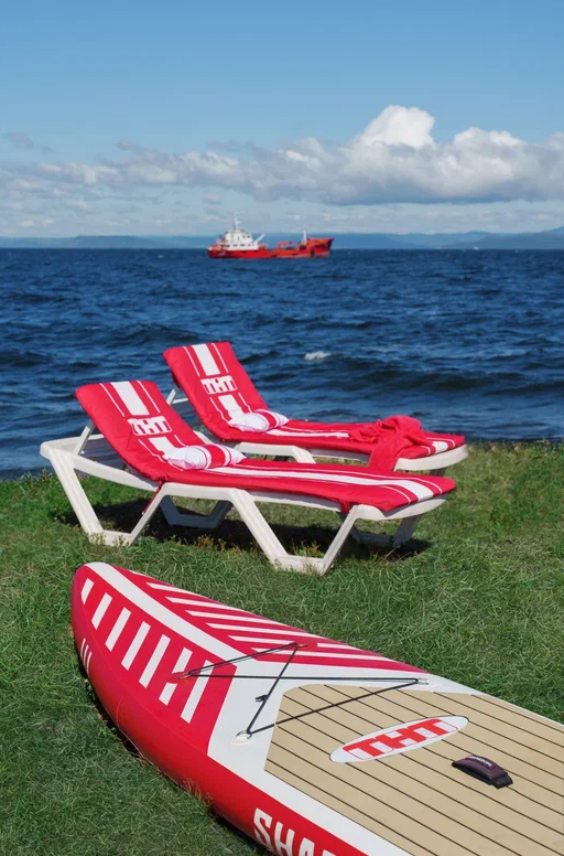 были установлены 102 брендированных шезлонга и 51 зонт. Дизайн пляжных